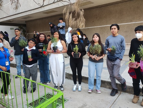 Donación de plantas al invernadero del Cecyt 3 por parte de alumnos de servicio social, con motivo del inicio de la primavera.
